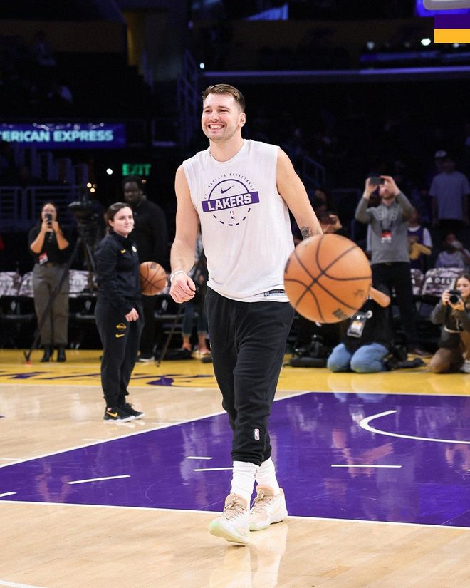 湖人队首发阵容:东契奇、里夫斯、斯马特、八村塁、海耶斯